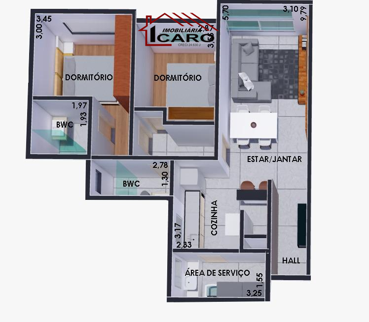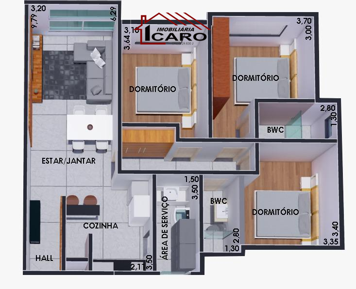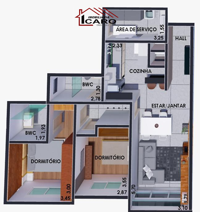 - Apartamentos de 2 e 3 dormitórios com churrasqueira