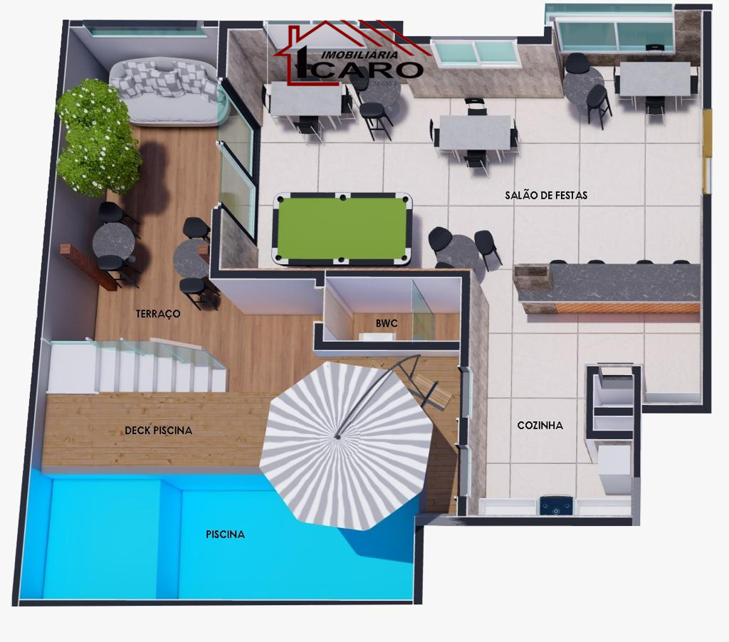 - Térreo com 3 salas comerciais de pé direito duplo